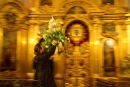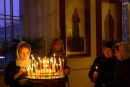 The Russian Orthodox Easter ceremony begins, as with all other functions with believers lighting candles in front of icons and praying, touching and kissing these same icons in a display of belief and hope.